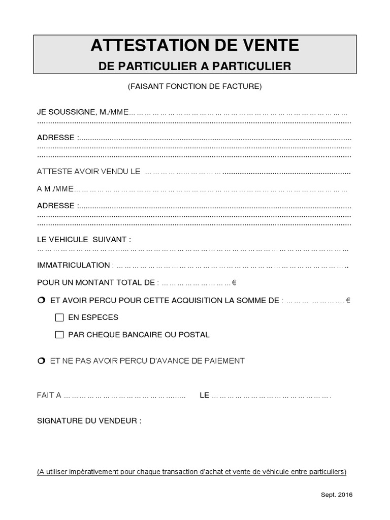 Vente Véhicule Entre Particulier : Acte De Vente Quad : Pourquoi vendre un véhicule usagé entre particuliers en se limitant à une entente verbale?. Vendre un véhicule entre particuliers : L'automobile d'une masse nettepoids du véhicule avec les équipements qui y sont fixés. Un prêt de véhicule entre particulier conduit à s'interroger sur les questions d'assurance. Suite à la vente de son véhicule, le vendeur doit déclarer en ligne la cession du véhicule afin d'être sollicité pour payer les amendes du nouveau propriétaire en cas d'infraction. Et au niveau des plaques d'immatriculations, faut il les changer?